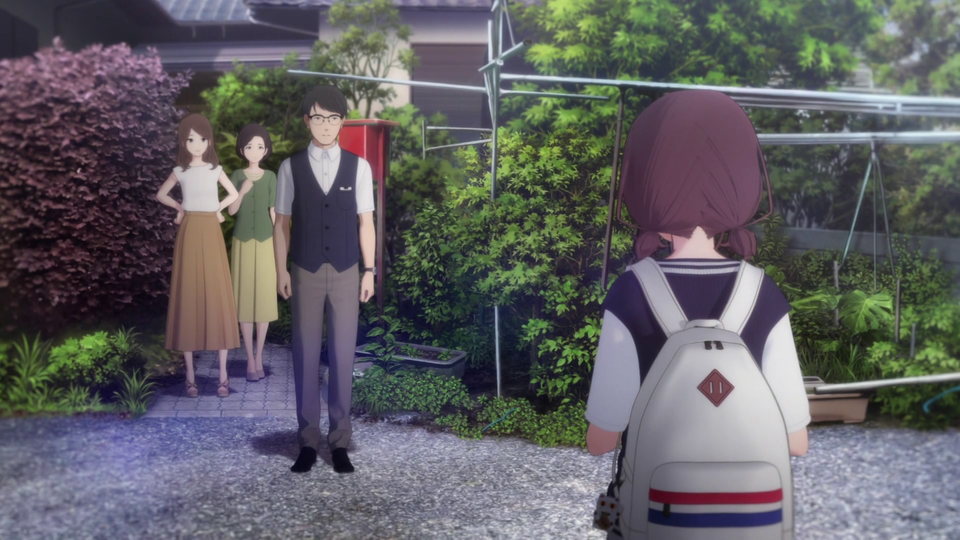 Art: While the opening scouting scene’s landscaping is a bit off, Nina’s family home is rendered as a dense, overgrown space, evoking the scars she’s left behind. The address Aso-ku Wakaba 1-500-27 doesn’t exist; it appears to be Wakaba 1 in Higashi Ward.