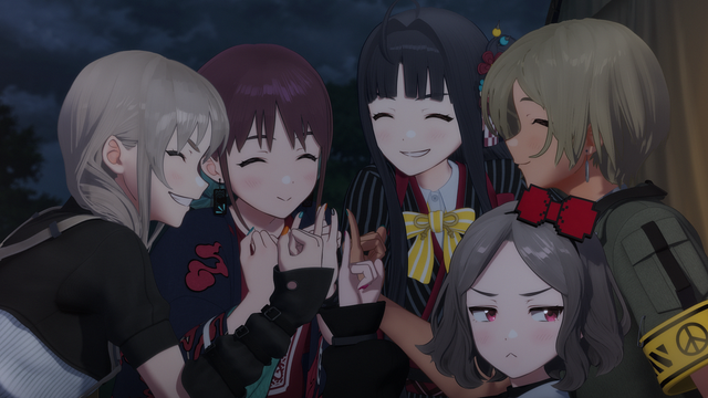 Script: True to an idol agency, it opens with promotional photos, then contract signing, the instrument shop, and the series’ first hot pot party. Diamond Dust’s challenge for a showdown and internal conflicts among members lead to songwriting struggles. Resolution comes through reconciliation: Nina’s pilgrimage/confession before a metaphysical perspective (God).